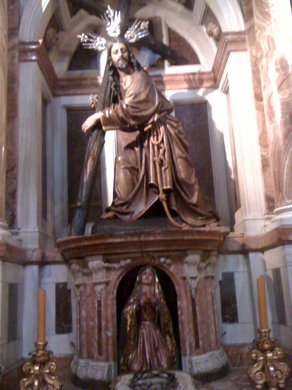 La giralda, one of the largest cathedrals of the world, right up there with St. Peters in Rome and St. Pauls in London. Such an amazing structure, incorporates parts of an old mosque, it is Gothic and Moorish, all mixed up like every thing else in this city. I have been circling the outside everyday and being amazed. Today I went in to see what there was to see. It is grand and has the usual bloody history of cardinals and kings. Rich, rich in every corner, large, imposing and though an amazing structure it did not have the peace of a church, the Walls and stones were too steeped in gore and stories. Who ruled? Kings or Cardinals, it was a thin line of power, there where wheels within wheels, whispers, betrayals and Conspiracies. I wish the walls could tell. Guides have such a rote story that I never listen, one has to be very lucky to find one who actually knows the history and not one who has just learnt up the regular babble to spout forth.
