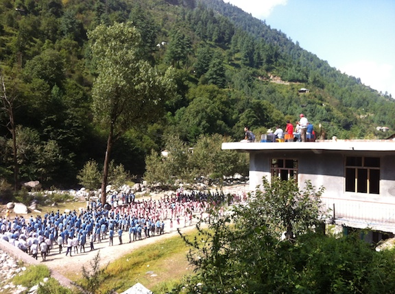 We have some characters in the group and the largest of them is Dr.B. He is a tall, lanky man who wears pink shorts with a red t- shirt and a blue shirt over it – his wispy white hair blows in different directions, he walks like a camel and gets lost every time we stop. He wants to talk to every person on the street. He joins the village children at their assembly and he tells long, disjointed and purely hilarious stories. He is also a brilliant cardiologist.