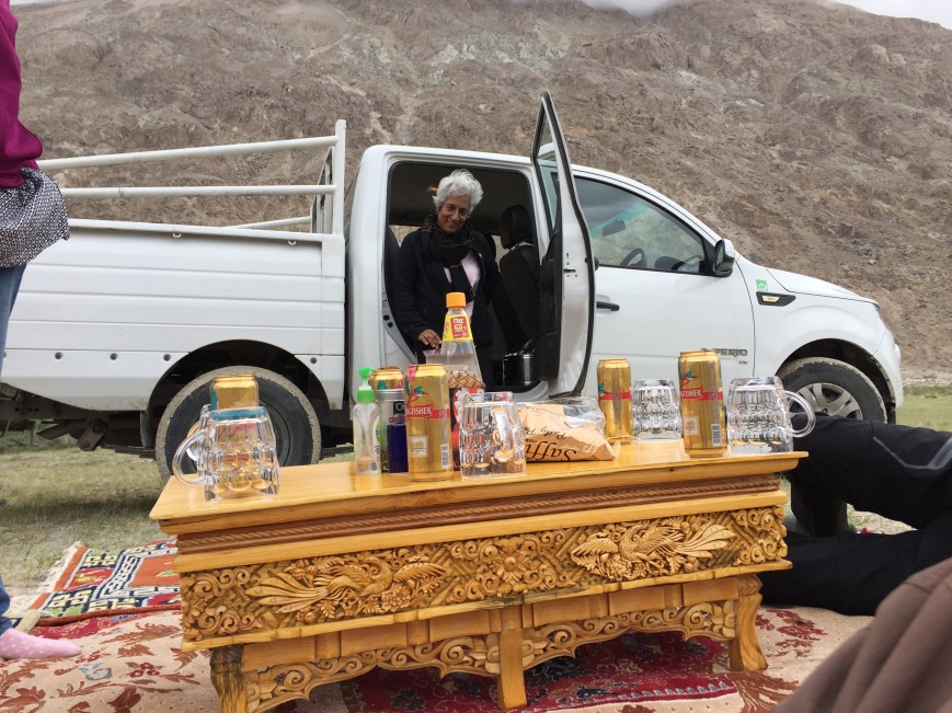 Some, but it’s the road from Manali to Leh and it’s magic stays undiminished no matter how often I travel it. There are more people on it, at Gramphoo the chai shop has got left up above the road and Koksar is almost merged, there are a few more dhabas. The meat curry was just as good and the overheard biker conversations just as lurid! The Lahaul valley is greener and more prosperous and utterly beautiful. Jispa is almost a township of many more camps and small hotels. The Padma lodge was nicely located and quite comfortable, though the camp across the road by the river looked much more inviting! Bara Lacha Pass brings back so many amazing memories, not least being of chocolate pudding and cream! The plains of Sarchu and the sculpted rocks beyond are timeless. The Gata loops and the spot where we crawled out from trekking the Tsarap gorge to be discovered by the nice Military policeman, oh so many moons ago. All so familiar, well remembered and so very relivable.The road to Ksokar is paved and what was an abandoned village is a thriving homestay enterprise, though I doubt any of the original owners are there. The lakes themselves have diminished, but the bird life still seems to thrive. Didn’t see the ubiquitous marmots – nor heard the whistles, but there were a lot more Kiangs than in the nearer past.Met some young people doing studies and comparisons – intense and interesting, sure we must have been so too at the stage…..now it was just nice to sit and stare, remember and build a new memory.The intention to go to Tso moriri was canned as some of the team was not feeling upto the altitude, but we drove to Leh via Mahe and enjoyed the drive. The Indus, that grand river, that always gives a thrill…the name evokes tales of travel, romance and adventure! I have never seen it like this – blue and green, such low water levels for this time of year. Lovely to look at but a harbinger of not nice things. Leh is a changed town that I am getting lost in, but it seems a lot of good, positive things are happening and so many young people doing interesting homestays, cafes and trips. The one’s that made it happen for us were Hajra and Mayas friend Jigmet of Mantra Himalaya with his happy cafe and interesting concepts. Behzad with his photography tours and super homestay in Nubra.A lovely meal at a really rather special restaurant called Bon appetite – Jigmet walked us up and up tiny alleys to emerge out into a lovely garden and quaint restaurant. It was dark but I am certain the views were spectacular. The food was excellent – lasagna, Mediterranean Nan was my favourite. Chocolate momos for desert.Driven over the Khardungla into one of my favourite valleys, Nubra. It is a gentle space of vastness. Cross the highest motor able pass into this Shangrila of spreading silver waters and sand. Striated and screed mountains and beautiful vegetation. It’s like land before time, a garden of Eden where all the so called super foods grow in wild abundance. Thorny thickets of ———-abound, Alfa Alfa is fed to cattle, hillsides of springing lavender scent the air. Wild garlic gets crushed underfoot as you walk. It’s an uncanny mix of sere brown mountains and this lush abundance. Clean, clear water and vividly blue skies. I cant get enough of it.We walked slowly up to the monastery where the Dalai Lama is coming next week to hold teachings. The burbling stream ran alongside, the myricaria and roses blushed pink and the lavender sprayed up in beautiful bushels of….I guess..lavender. Spires of poplars spear the blue, blue sky and the willow woven fences make most interesting dividers. You can fill your water bottle from the stream like in the old days. There doesnt seem to be the usual plastic blocking every water way and tree stump. I think I fell in love with a perfect spot. Dinner al fresco surrounded by wild garlic, swaying trees and lanterns, life does not get much better. I say that so often and how blessed it is to be able to do so.A drive across a river bed, a walk up a rocky outcrop in the middle of the river just short of Panamik and found a lovely lake in the middle. Came back to a marvellous picnic laid out by Sajjan and forgot his name. Perfect day – then the dunes at Hundar and hordes of people to see the camels and the dunes , but it is organised and clean most impressive. An evening around the bonfire with excellently crafted Rob Roy’s and a ‘Gajjar Chillum’! Most interesting and utterly hilarious. This is Behzad and Voygr hospitality and it was brilliant.The drive back from Nubra was very quick and we were back at our hotel in record time. The fatigue is setting in and I slept. Dinner at bon appetite again – Behzad invited Kendrup who is the warden at hemis national park and a snow leopard tracker cum conservationist. It was a tremendous honour to meet him and hear of all the work that is now happening in these amazing mountains with both the people and the other life that still manages to co exist. Good to know all these great people that add to the experience. Had an uneventful if beautiful drive to spend the night at the plains of Sarchu in a windy tent. I must say I do not fancy tent living any longer unless it is my own. Woke to rain on the roof and the thought of the Baralacha nalas made for a swift departure. Rained all the way but thankfully we crossed Bara lacha with just a smattering of slippery snow. The icing on the cake was an empty Rohtang it being Tuesday – pure bliss to not have to ask men, women, children in deep winter overalls, sweltering in the hot sun up high, avidly looking for non existent snow! Home by 4 with no crowds at all. Blessed that everything went so right.